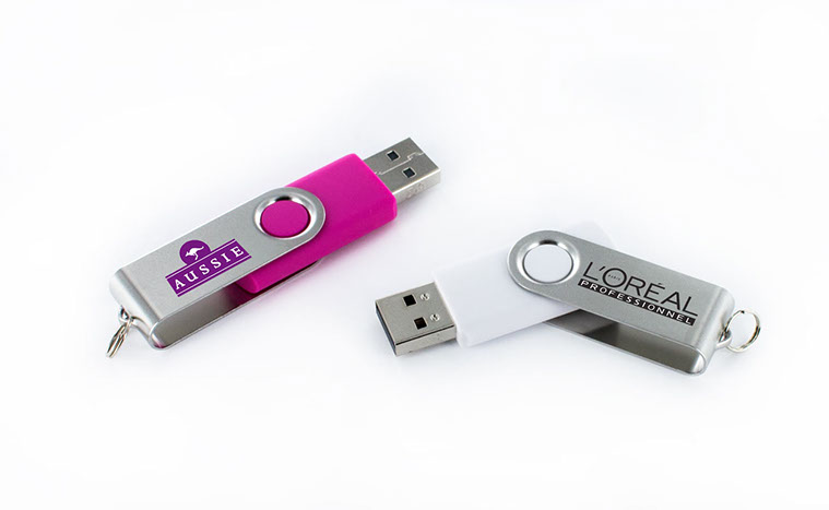 La memoria USB B01 posee un exclusivo sistema de rotación de 360 grados de metal y puede ser serigrafiada de 1 a 4 colores por ambas caras (incluido en el precio). Con su diseño innovador se asegura de nunca perder la tapa. Esta memoria USB viene con un pequeño agujero para poder engancharla a un llavero o colgante.