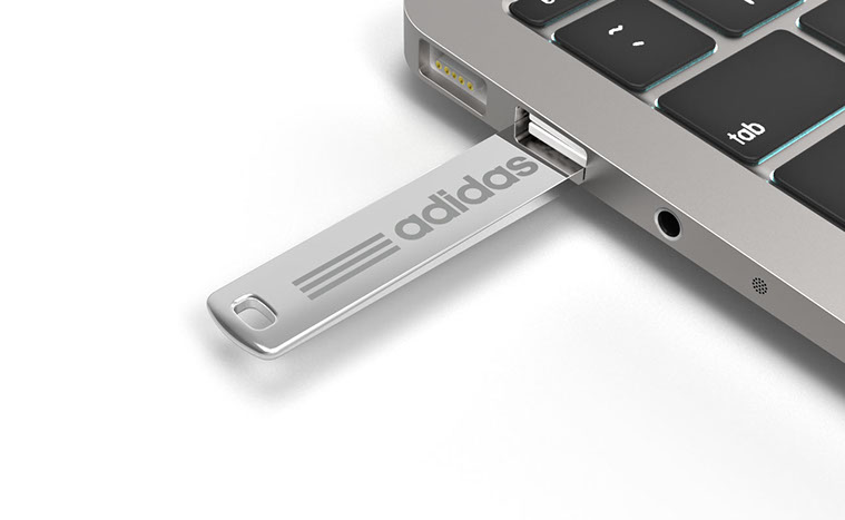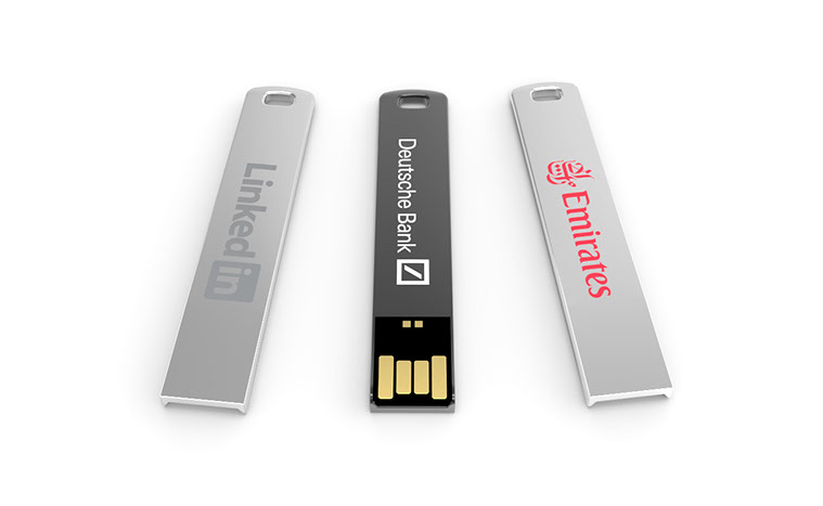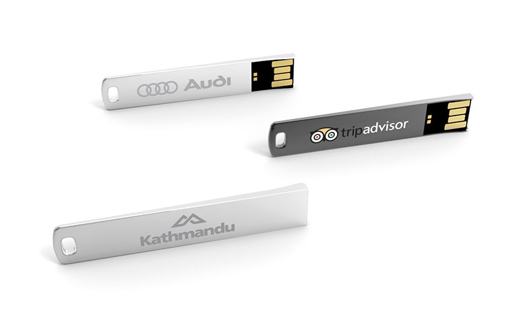 La Memoria Wallet es compacta, esbelta y elegante. Con tan sólo 2,3 mm de grosor encaja perfectamente en la cartera de sus clientes y puede añadirse fácilmente a cualquier llavero. Ambas caras permiten tanto serigrafía como grabado a láser para marcar el logotipo de su empresa.