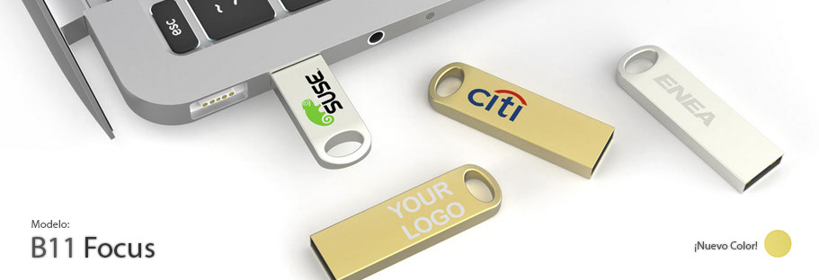 La Memoria USB Focus tiene un diseño de metal compacto y elegante. Sólo 41 mm de largo y menos de 5 mm de espesor lo cual es perfecto para colgarlo de un llavero.