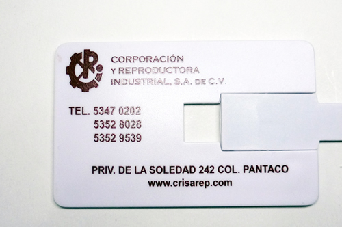 Modelo BC01 Card, Tarjeta USB Básica, chip giratorio cuenta con un amplia área de impresión aplicando marcado en serigrafía hasta 4 tintas o Full Color a base de Rayos UV o Tampografía.