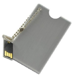 Modelo BC152 Card, Tarjeta USB Básica Metálica, chip desprendible con cadena, cuenta con un amplia área de impresión aplicando marcado en serigrafía hasta 4 tintas o grabado láser.