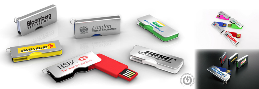 La belleza esta presente en un reducido tamaño en esta nueva serie de memorias USB. Desde su interior surge un pequeño brazo giratorio disponible en 6 colores, que funciona como conector en el puerto USB de su computadora. La carcasa de metal brillante supone, por su elegancia y ligereza el escaparate perfecto para serigrafiar o grabar su logo e información de contacto.