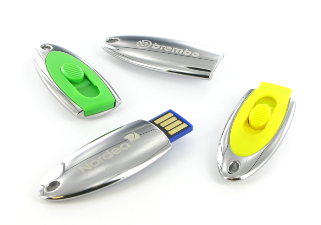 Líneas brillantes y un acabado de primera calidad posicionan al Ellipse USB lejos de la competencia. La memoria USB Ellipse con ingeniería de precisión de aleación de zinc cromado y plástico suave al tacto, está disponible en una amplia variedad de colores estándares o puede ser de un color específico de Pantone de su elección. La personalización de la marca puede realizarse mediante láser o serigrafía hasta cuatro colores, asegurando que tu mensaje estará presentado de forma elegante y clara. El suave mecanismo corredizo protege el conector del USB cuando no está en uso asegurando que el modelo sea compacto y atractivo.