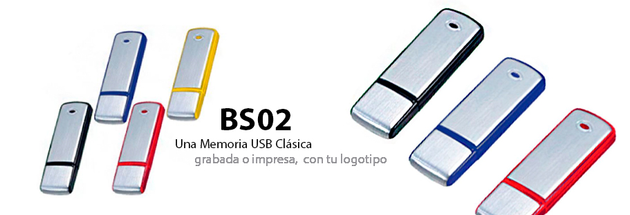 Las memorias Modelo BS02 con diseño rectangular en aluminio clásicas puede ser serigrafiada en color o grabada a láser por ambas caras, con aro de plástico para colgar, uno de los modelos básicos más vendidos.