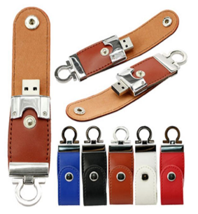 Llavero USB con terminado en Piel, elegante y portable, en 5 colores diferentes. Se puede marcar su logotipo en Estampado o Serigrafía.