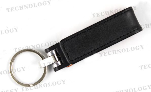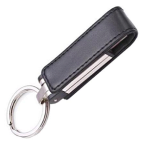 USB Modelo PL03 con terminado en Piel, elegante y portable con aro de metal, para que lo hagas llavero Se puede marcar su logotipo en estampado, serigrafía o grabado láser.