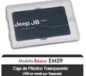 Estuche para Memorias USB, de plástico el cual dispone de una espuma blanca con un corte que se ajusta al producto, hecho especialmente para los modelos básicos en forma de Tarjeta.