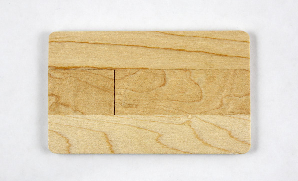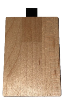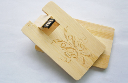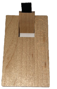 Modelo Tarjeta WoodCard, Tarjeta USB Básica hecha de madera reciclada, chip giratorio cuenta con un amplia área de impresión aplicando marcado en serigrafía hasta 4 tintas, Full Color a base de Rayos UV, Tampografía o Grabado Láser.